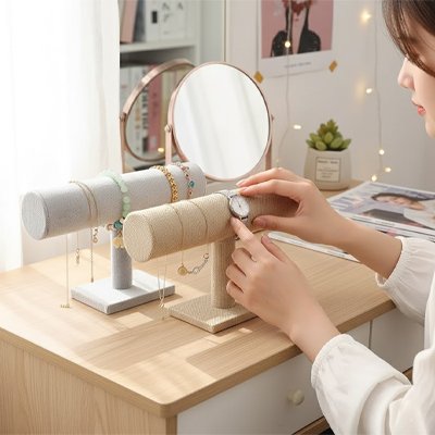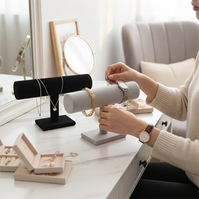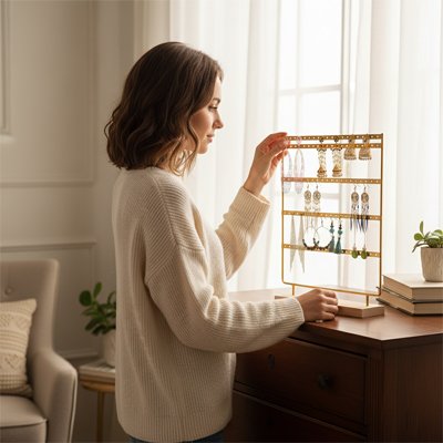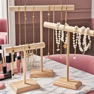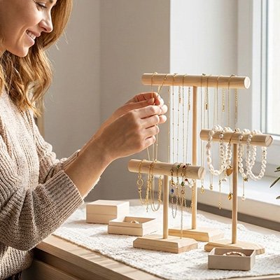 Boîtes à bijoux, porte-bijoux, arbres à bijoux, présentoirs et porte-lunettes pour organiser vos accessoires avec élégance.